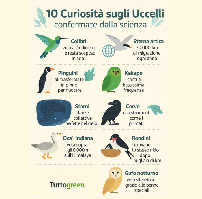 Gli uccelli non smettono mai di stupirci: dalle migrazioni incredibili ai comportamenti sociali, dalle capacità sensoriali estreme alle strategie di sopravvivenza più ingegnose. Ecco una selezione di curiosità sugli uccelli, tutte confermate da studi scientifici, raccontate con un tono leggero ma rigoroso.