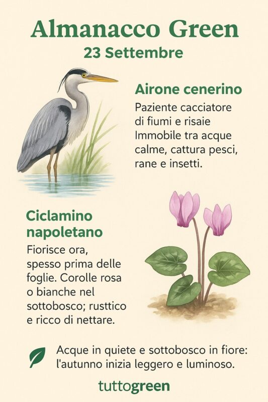 Almanacco Tuttogreen 23 settembre: Airone cenerino & Ciclamino napoletano