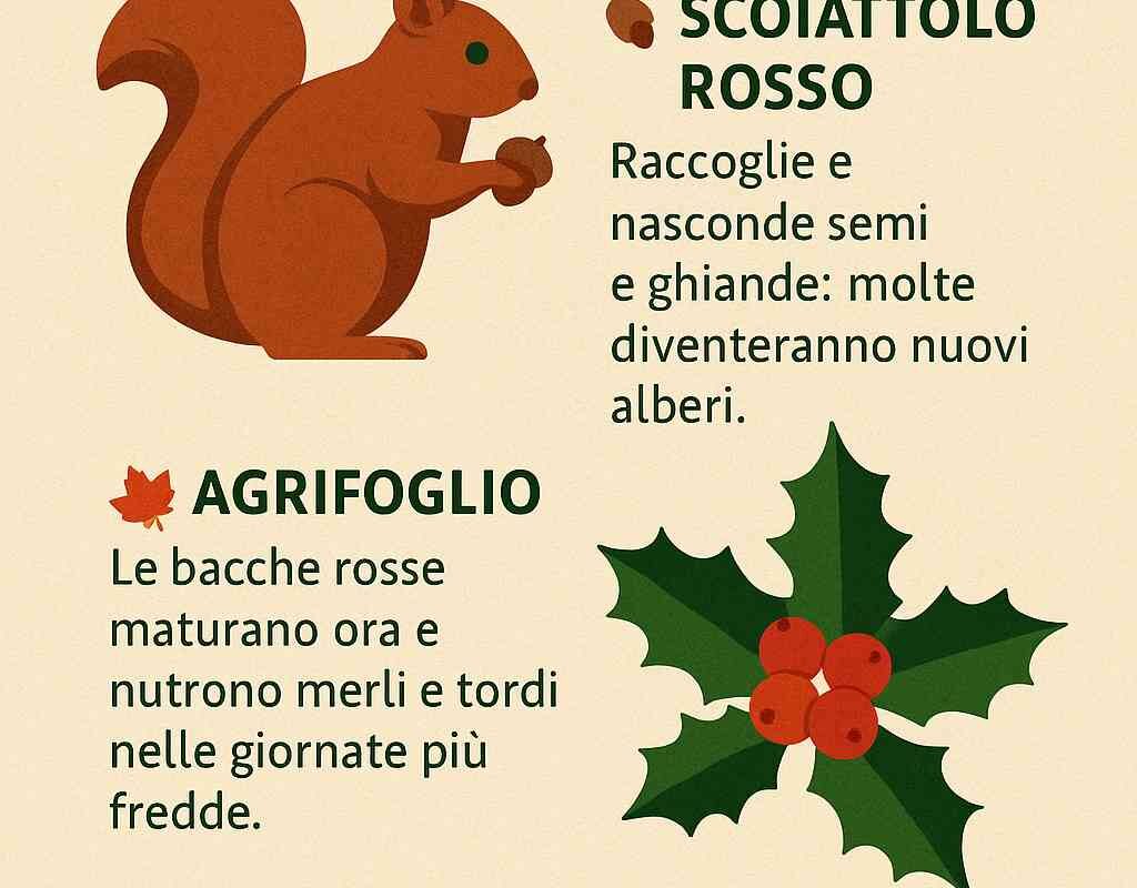Almanacco Green del 17 novembre: lo scoiattolo e l’agrifoglio, il bosco che si prepara al futuro