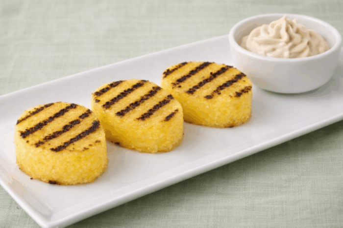 Come prepararla. Tagliate la polenta fredda a bastoncini o fette spesse. Spennellate con poco olio extravergine. Grigliate su piastra calda 3-4 minuti per lato fino a formare le classiche righe dorate. Servite con salsa allo yogurt fatta con 125 ml di yogurt greco + succo di 1/2 limone + erbe aromatiche tritate qb.