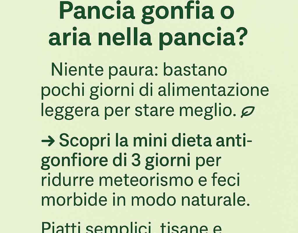 Pancia gonfia e aria intestinale? Ecco la mini dieta anti-meteorismo di 3 giorni Meteorismo, bolle d’aria nella pancia e feci…