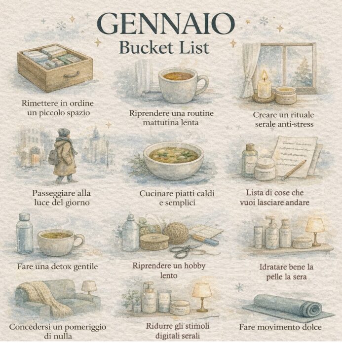 Questa bucket list non va completata tutta. Va usata come ispirazione, adattata, riscritta, vissuta, perché il vero proposito di gennaio, forse, è solo questo: iniziare l’anno prendendosi cura di sé, un gesto alla volta.