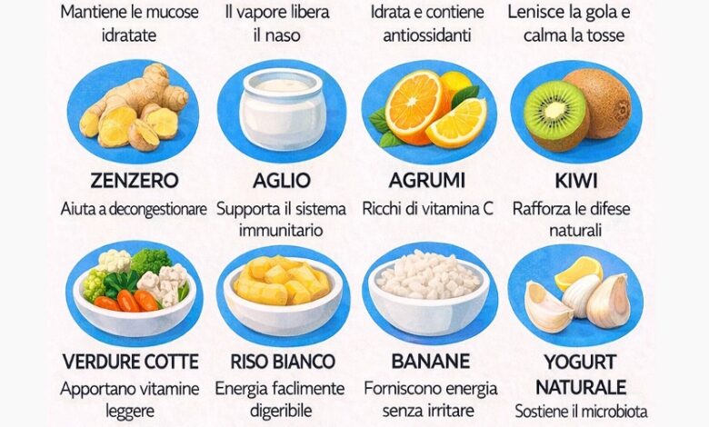 Il raffreddore non è grave… ma è terribilmente fastidioso. Naso chiuso, starnuti continui, gola irritata e quella sensazione di testa ovattata che non ti lascia respirare bene. La buona notizia? Anche quello che metti nel piatto può aiutarti. Alcuni alimenti favoriscono l’idratazione, fluidificano il muco e aiutano ad aprire il naso chiuso in modo naturale. Vediamo cosa succede nel corpo quando arriva il raffreddore e quali sono i 12 cibi più utili per stare meglio.