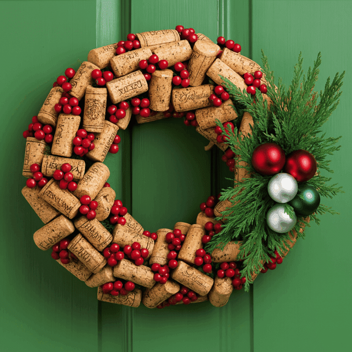 Partendo da una ghirlanda di polistirolo (le dimensioni dipendono dal numero di tappi che avete a disposizione), incollateci con la pistola per colla a caldo i tappi più semplici e meno belli come primo strato. Poi incollate i tappi più insoliti come strato superiore della ghirlanda.