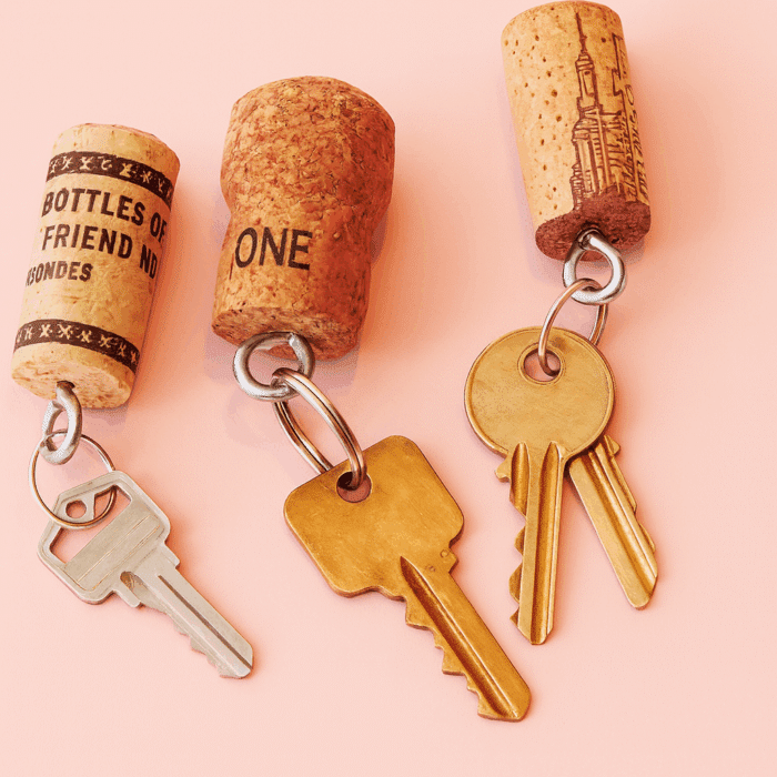 Potreste fabbricarvi in appena 2 minuti un comodo portachiavi in sughero, anche galleggiante! Serve 1 tappo, 1 anello metallico e 1 vite con gancio per fissarlo al tappo. Potrete colorarlo o personalizzarlo con il vostro nome e cognome.