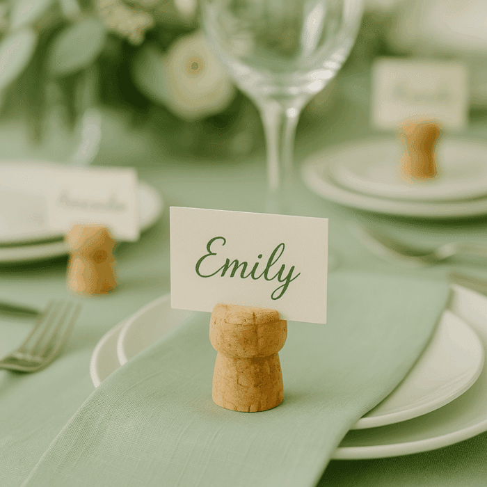 Un’idea divertente ed economica per decorare la tavola è realizzare dei pratici segnaposto con i tappi di sughero, meglio usare quelli delle bottiglie di spumante che hanno una base più larga e adatta per rimanere ‘in piedi’ sulla tavola.