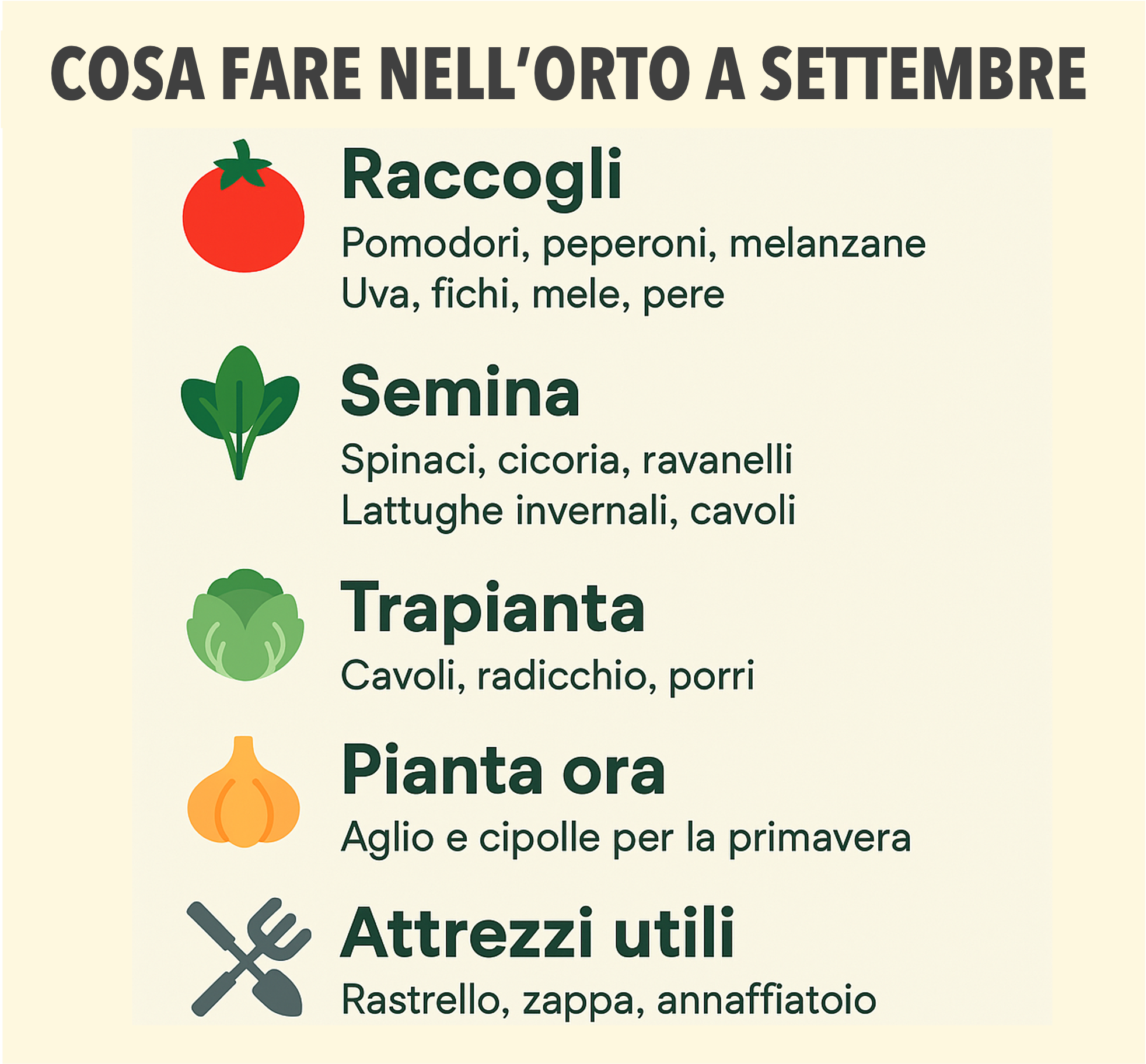 Settembre è il mese in cui l’orto cambia abito: salutiamo l’estate, ma non è ancora tempo di riposo! Anzi, questo è il momento giusto per raccogliere gli ultimi frutti della stagione, sistemare il terreno e