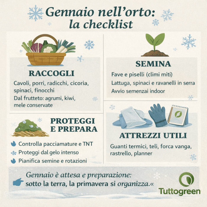 Gennaio non è un mese vuoto, ma un mese di preparazione silenziosa. L’orto sembra fermo, ma in realtà sta accumulando energia.