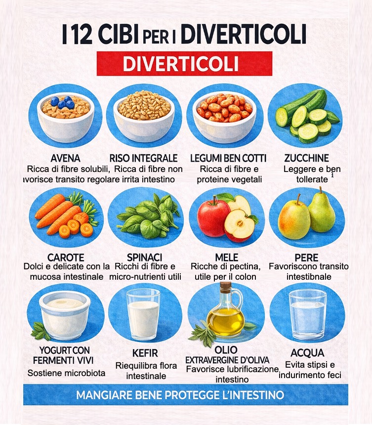Cosa mangiare con i diverticoli: i 12 cibi che aiutano davvero l’intestino