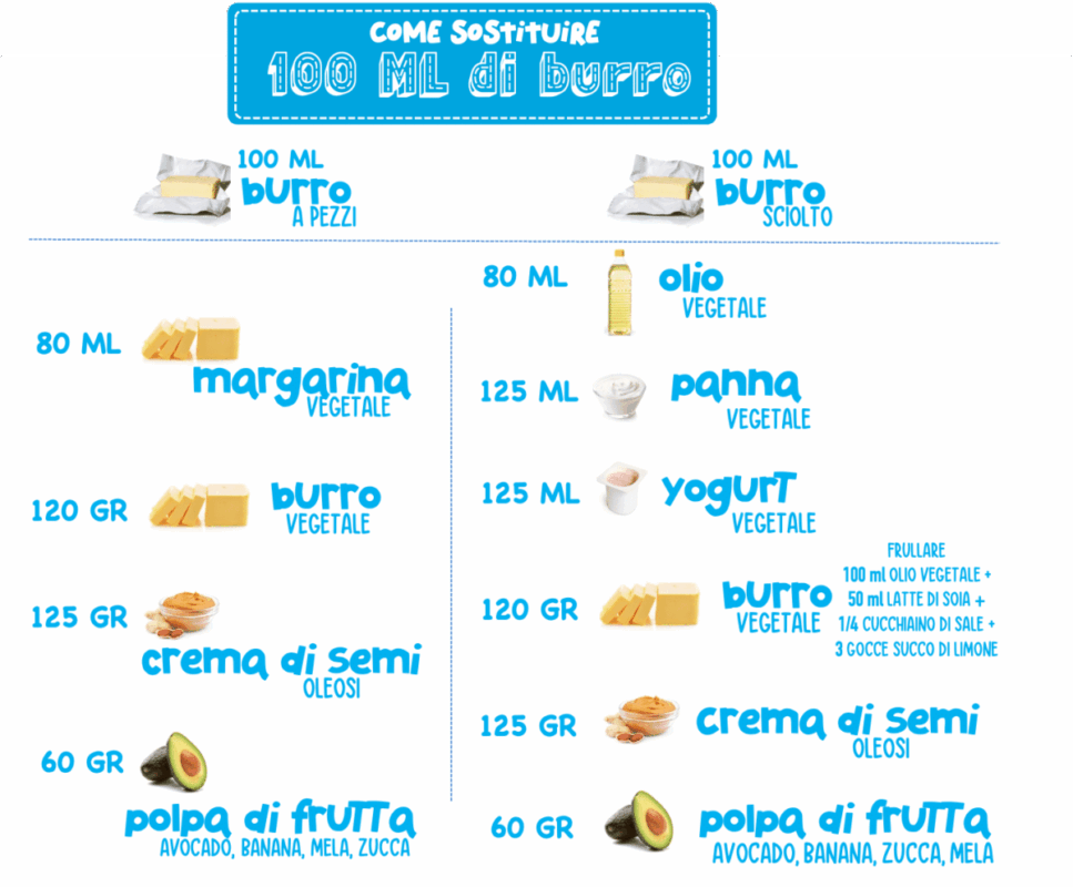- 100 gr di burro equivalgono a 125 ml di yogurt vegetale