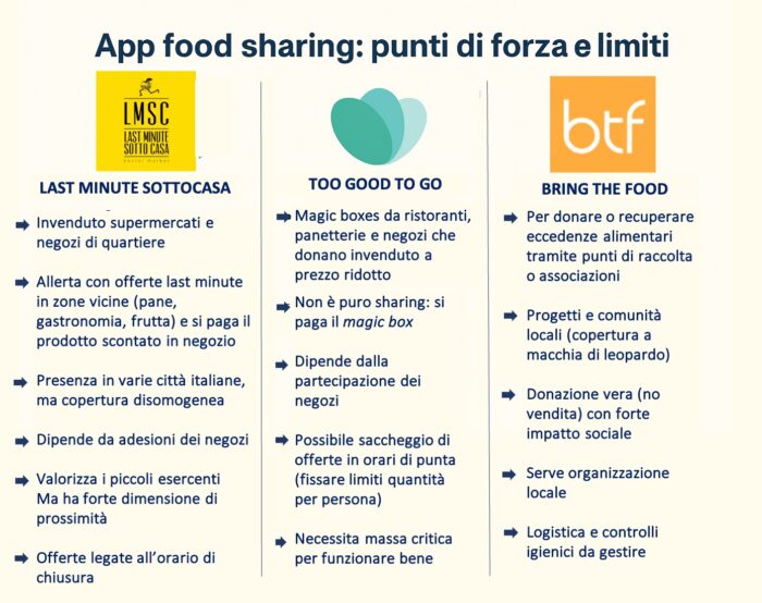 - Sicurezza alimentare: garantire che il cibo condiviso sia ancora consumabile, stato igienico, corretto trasporto