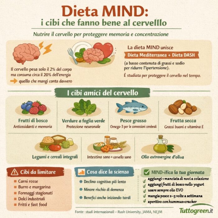 La dieta MIND non è una moda, ma uno dei modelli alimentari più solidi per la salute del cervello. Non promette miracoli, ma costruisce protezione nel tempo, un pasto alla volta.
