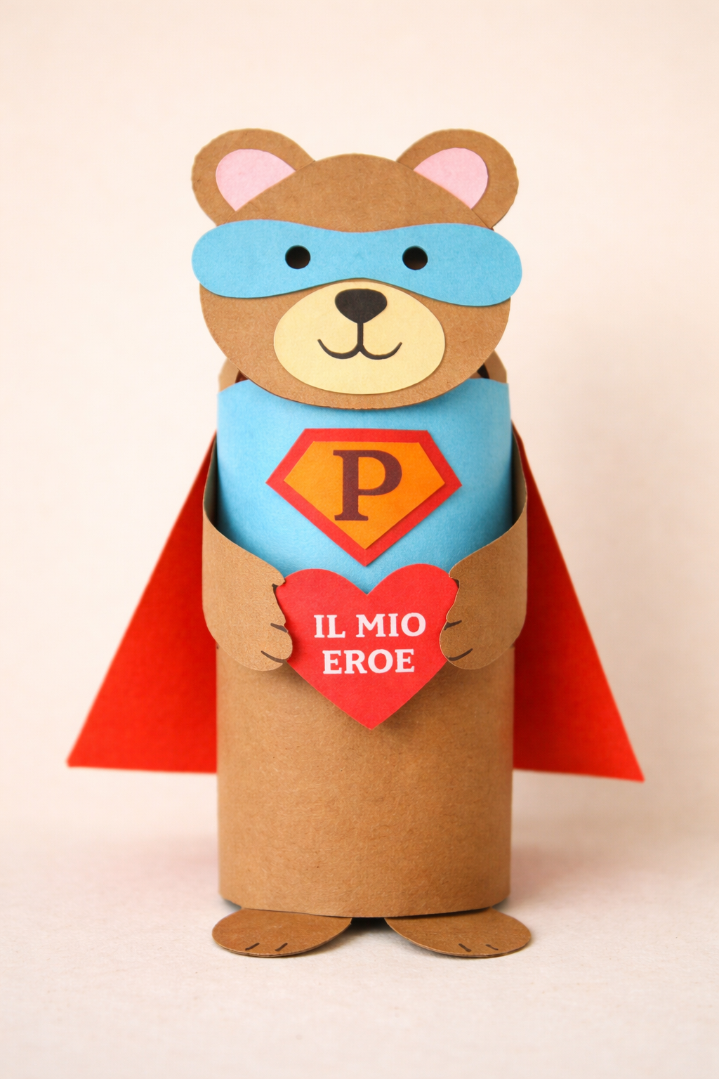 Mai pensato di utilizzare i vecchi rotoli di carta igienica? Con il rotolo potete creare un piccolo super-eroe, che è poi il papà!
