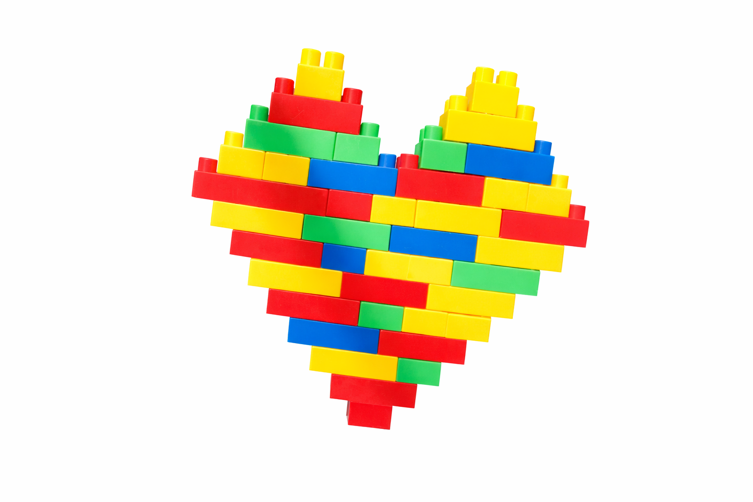 Si può anche costruire un grande cuore colorato di mattoncini multicolor con Lego Duplo o altri sistemi adatti ai più piccoli.