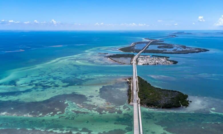 Le isole sono dotate di un aeroporto, ma il percorso più tipico oltre che affascinante è quello via autostrada – in macchina o in moto, come fanno migliaia di biker – venendo da Miami.