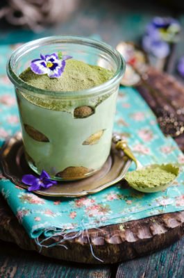 Una variante del classico tiramisù è questa ricetta a base di polvere di té verde giapponese.
