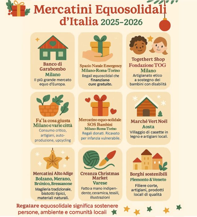 Scegliere un mercatino equosolidale significa regalare più di un oggetto: è un gesto per l’ambiente, per le comunità e per un Natale più autentico. E in Italia, nel 2025, le occasioni non mancano.