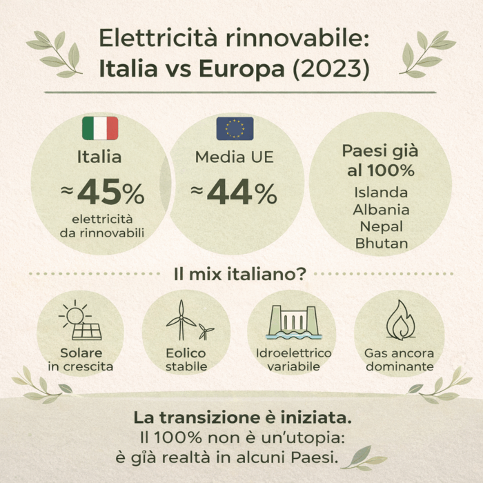 Questi esempi non sono modelli copia-incolla per ogni Paese, ma sono una prova concreta: un sistema elettrico rinnovabile al 100% esiste già in diverse realtà, e molti altri stanno correndo verso percentuali sempre più alte.