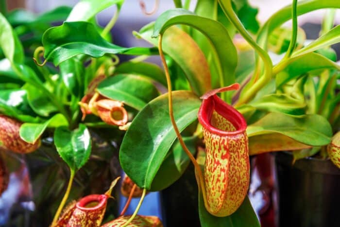 - Nepenthes: pianta rampicante appartenente alla famiglia delle Nepenthaceae. Attrae la preda dentro il suo ascidio che contiene un liquido digestivo pronto a liquefare la vittima.