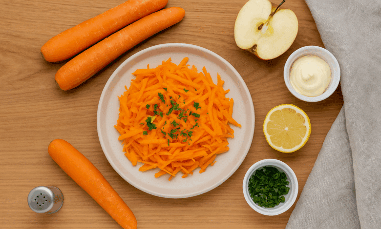 Preparazione. Lavate e sbucciate le carote con la mandolina e grattugiale. Grattugiate anche la mela e unite subito il succo di limone per impedire che si ossidi e diventi scura. Unite alle carote, le mele, il prezzemolo tritato e condite con sale e maionese. Mescolate bene e servite con fettine di pane per raccogliere il delizioso sughetto che si formerà!