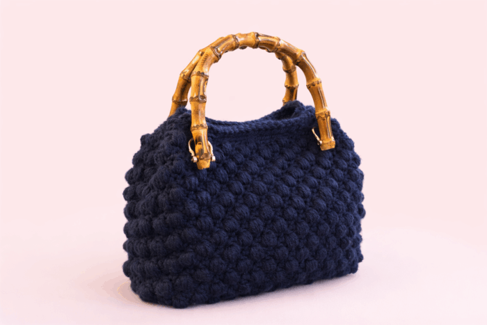 Potete realizzarne una con manici già pronti, come questi in bambù, e farla in punto Nocciolina chiamato nche Bobble stitch fitto. Trovate diversi tutorial per realizzarlo. Come si realizza (versione base):