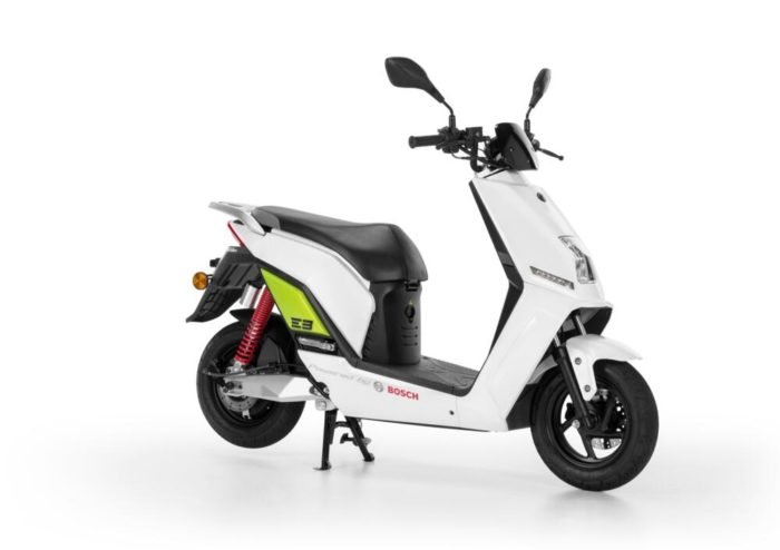 Quadro strumenti integrato, casse bluetooth, motore Bosch 1200W, offre un’autonomia che arriva fino a 50 km con 1 batteria (a 100 km con 2 batterie). I freni a disco idraulici, anteriori e posteriori, si innestano istantaneamente per ridurre in maniera significativa la distanza di frenata dello scooter, mentre il sistema elettronico di frenata ricicla fino al 6% dell’energia generata dopo la frenata che ritorna alla batteria. E’ già un installato un allarme antifurto.