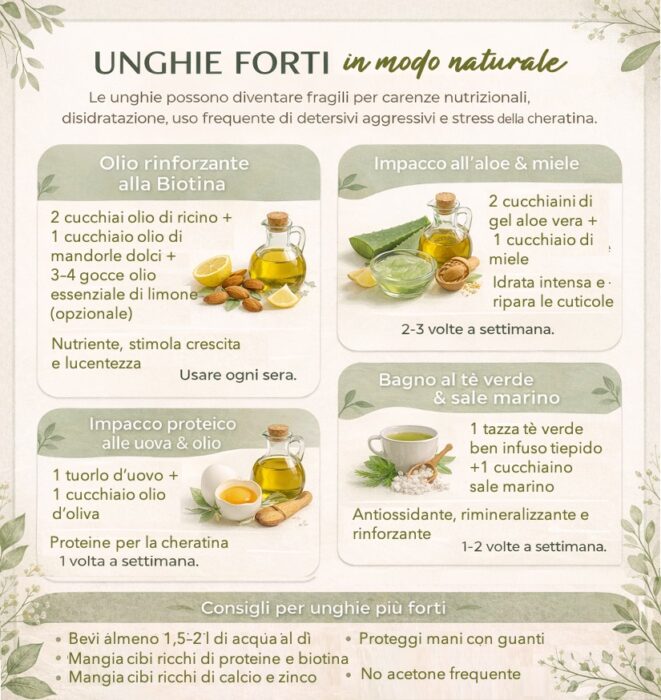 Per chi desidera invece cimentarsi con rimedi naturali e casalinghi ecco un elenco di spunti per rinforzare e prevenire rotture.