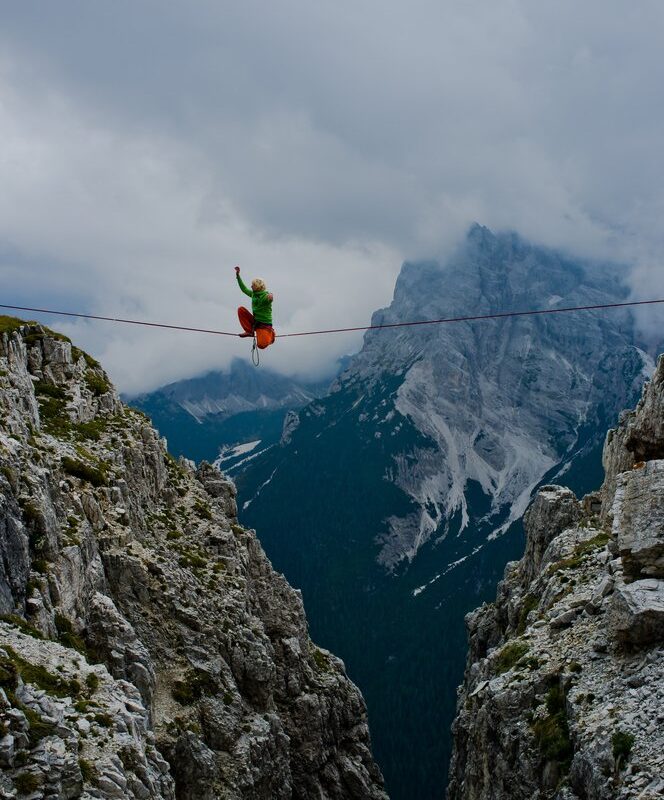 Sulle Dolomiti si tiene un festival del funambolo che è riservato solo a chi ha coraggio di restare attaccato su corde…